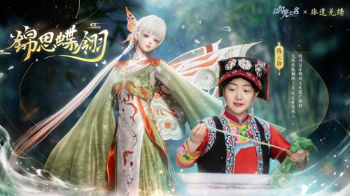 如果说梦遐绮旅六星时装是西式童话幻想的狂欢,那五星锦思蝶翎套装则是东方美学的深情表达。这套时装特邀非物质文化遗产羌绣代表性传承人陈云珍老师联合创作,将千年羌绣技艺与新中式设计融合,让非遗文化在数字世界焕发新生。