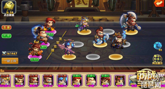 在游戏中玩家可以自由选择五名武将上场战斗,另外三位支援武将放在后面支援。这五位的站位会形成不同的阵法,将会获得暴击击、闪避、防御等不同属性的提升。武将的站位决定了其在战斗中的输出环境,因此十分重要。