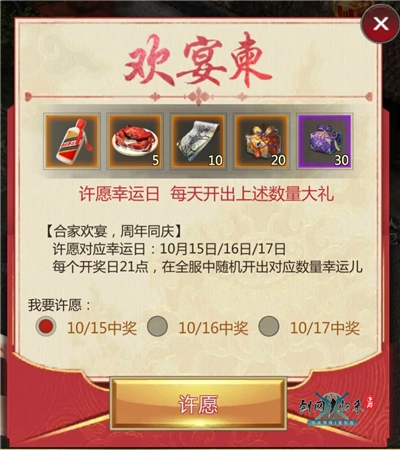 10月15日维护后-10月25日4:00期间,在世界频道发送特定的祝福语,可以触发惊喜福利,概率获得周年福袋哦!打开福袋可获得玄晶、高级白驹丸、头像绘卷等好礼,快来点击庆典蛋糕送出祝福~