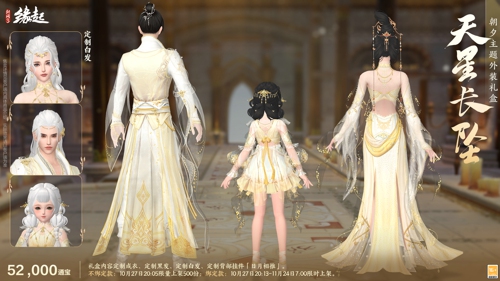 豪华版礼盒内含成衣+定制黑发+定制白发,售价38,000通宝,不绑定款10月27日20:09限量上架500份。