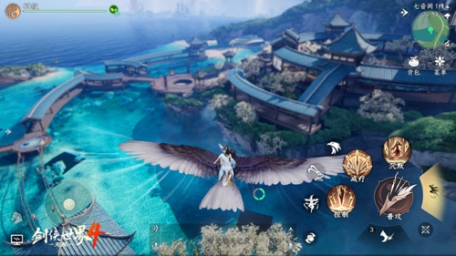 轻功不止于赶路,前面还有诗与远方。有一位玩家便给西山居游戏设计团队留言:“江湖那么大,我想去看看”。如果想要瞬息到达远方,玩家还可选择“御霄”轻功,一声清啸响彻云霄,将会有巨雕振翅御风而来,载着游戏角色扶摇直上天际,过一把神雕侠侣的瘾......