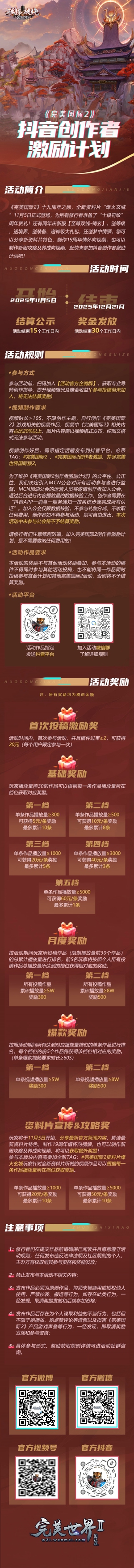 与此同时,短视频征集活动也在火热进行中。用镜头记录下你在新资料片中的每一个精彩瞬间——无论是攻克世界BOSS的激动时刻,探索新地图的惊艳发现,还是与队友的趣味互动,只需带上话题#完美国际2、#完美国际2创作者激励,并@官方账号,即有机会赢取奖励。