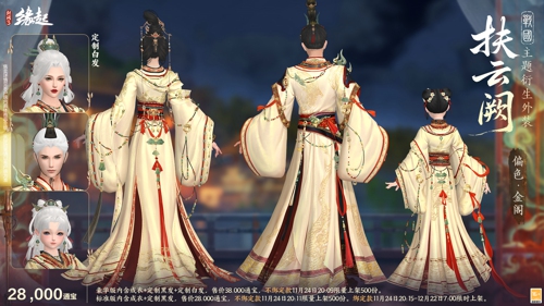 豪华版礼盒内含成衣+定制黑发+定制白发,售价38,000通宝,不绑定款11月24日20:09限量上架500份。