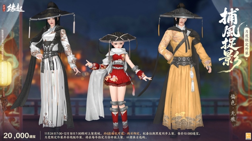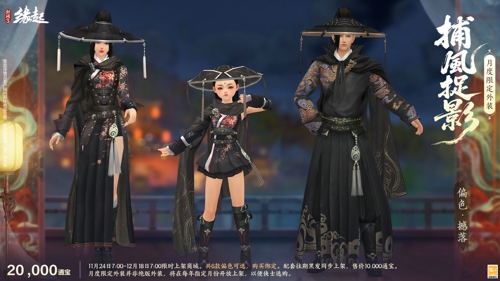 朔风猎猎明月钩,飞檐走壁觅踪由。月度限定外观「捕风捉影」六款偏色11月24日返场,干练之廓形暗藏玄机。