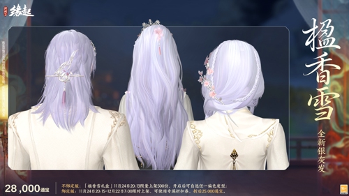 不绑定版「楹香雪礼盒」11月24日20:13限量上架500份,开启后可自选任一偏色发型;