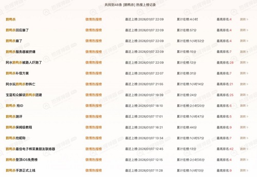 1月7日,由金山世游和虎牙联合发行的社交推理手游《鹅鸭杀》正式开启全平台公测。上线仅24小时,游戏新增注册用户突破500万,并迅速登顶iOS免费榜,在微博、快手、B站、抖音、小红书等主流社交平台共收获超过30个热搜话题,成为2026年开年首个“破圈”爆款游戏。